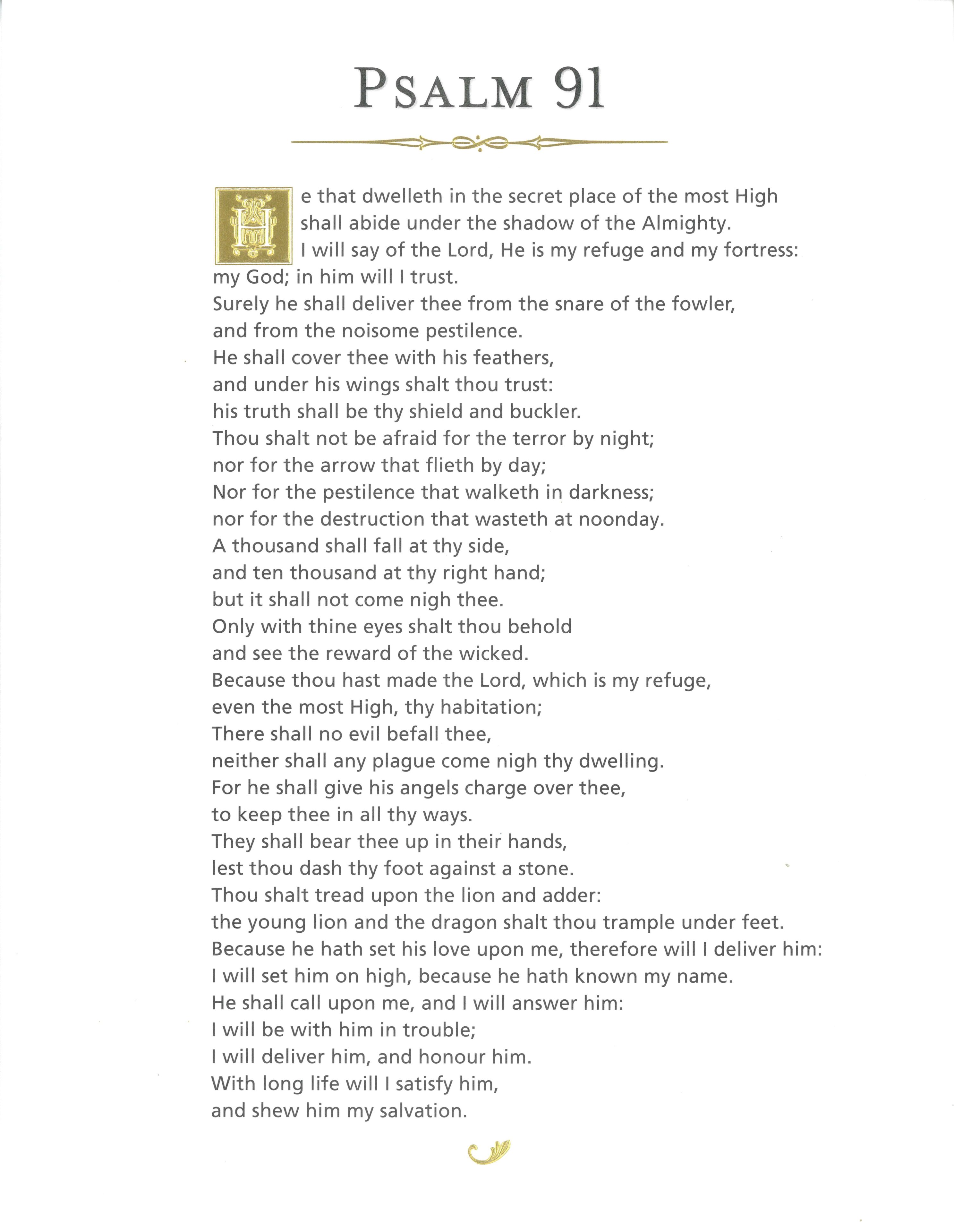 Printed on card stock with gold foil embellishment. Features the complete King James Version text of Psalm 91, as well as a separate card with historical information about “The Significance of the Ninety-first Psalm to Mary Baker Eddy.”