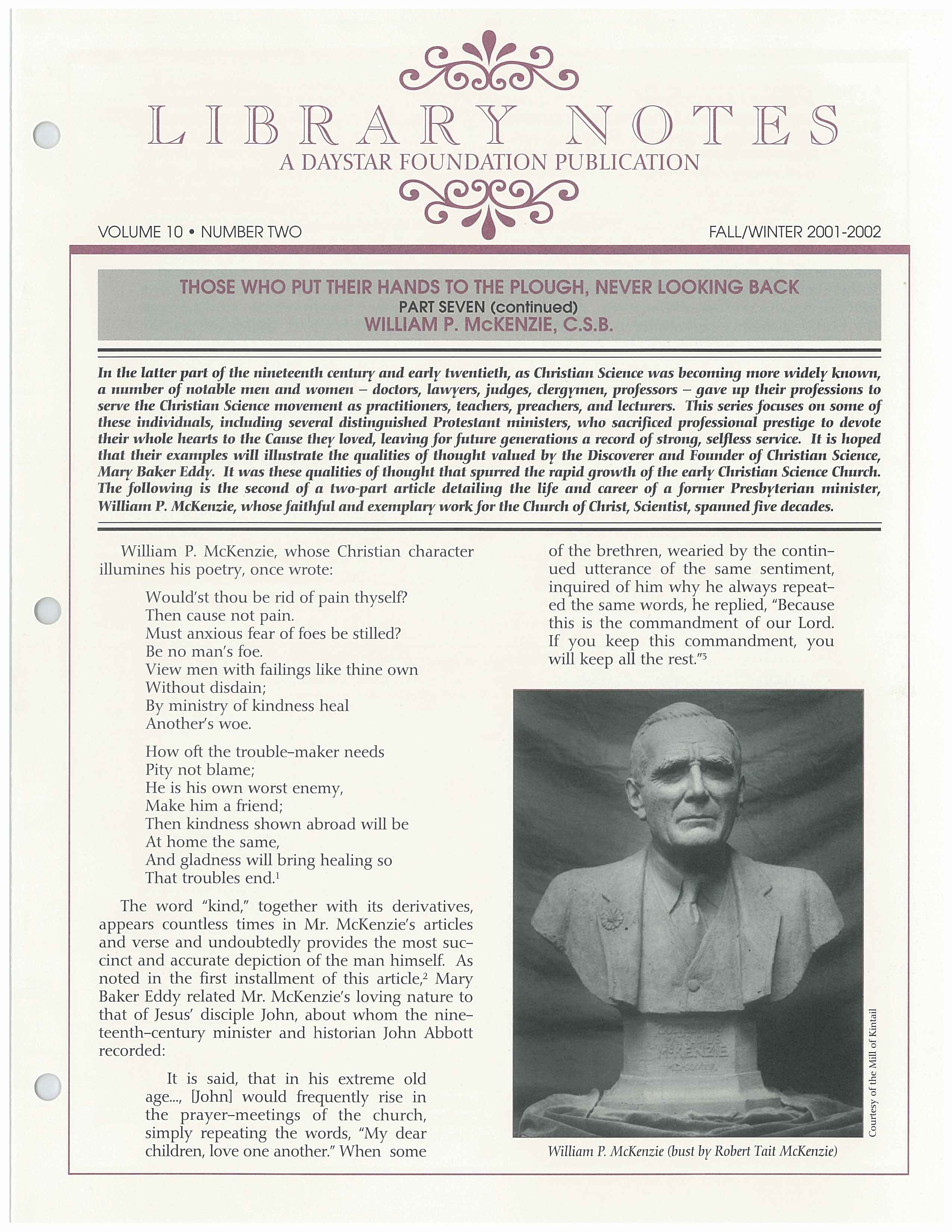 This issue is the second of a two-part article detailing the life and career of a former Presbyterian minister, William P. McKenzie, whose faithful and exemplary work for the Church of Christ, Scientist, spanned five decades.
